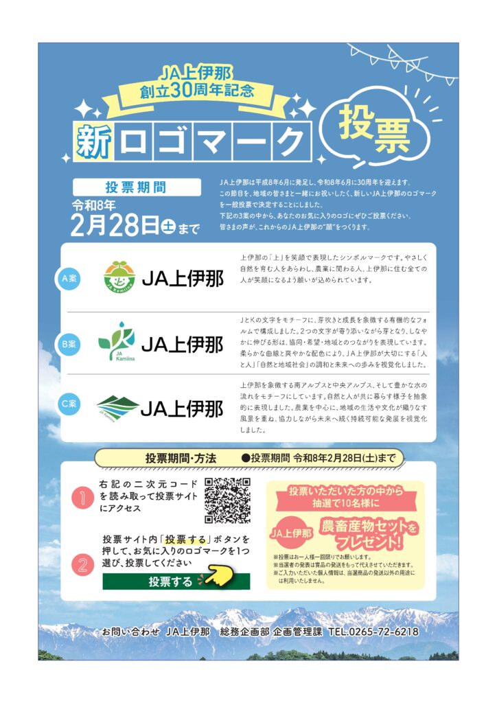 皆さまの声がこれからのJA上伊那の”顔”をつくります。ぜひご投票よろしくお願いいたします。